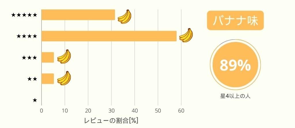 80%以上の人は「星4」以上の評価をつけており、バナナ味の評価が高いことがわかりますね!